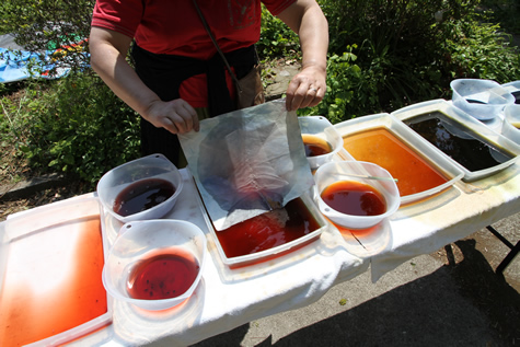 自分たちで育てたものは、とりわけ愛着があります。そして、例えば、それが野菜だったら収穫の喜びはひとしおです。その時のちょっとした感動や思い出を広報に活かす方法を考えてみました。ここでは、旧モーガン邸を例にお話させていただきます。旧モーガン邸では庭で育てた藍の苗で「藍の染め物ワークショップ」を市民のために行っています。このワークショップを外でやったら、もっと活動のすばらしさを伝えられると思いました。そして考えたのが、苗をシェアして違う場所で育ててもらい、その育った葉で現地でワークショップを行うという試みです。自分たちで育てた藍をつかって、その場で穫って染め物をするライブ感覚は記憶に残る出来事になるでしょう。同時にシェアもとの活動を深く知る事になっていくのではないでしょうか。