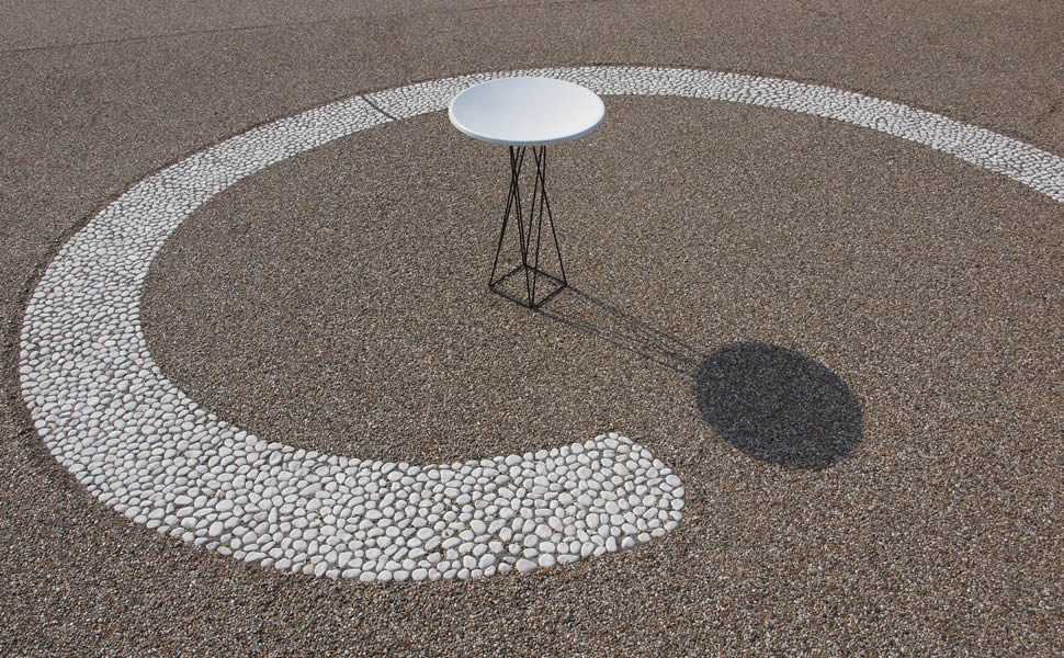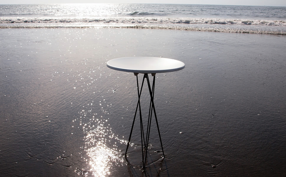 廃棄されたパラボラアンテナを再生し、家具や雑貨といった商品や公共施設に使える材料としてリユースすることを目指して考案した試みです。不要になったモノを再生させながらユーモアを交えて伝えていくことで、少しでも多くの人(こどもたちも)に環境問題やムダを考えるきっかけづくりができたらという考えでつくりました。写真のテーブルは天板にパラボラアンテナの皿の部分を使い、昔の灰皿スタンドの脚を組み合わせ構成しています。楕円形で緩やかな窪みを持つ無彩色のパラボラを例えば多くのデザイナーのアイデアを介しリユースプロダクト化することで、そのイマジネーションを共有し、楽しく環境のことを考えるコミュニティーづくりができたらいいなと思っています。